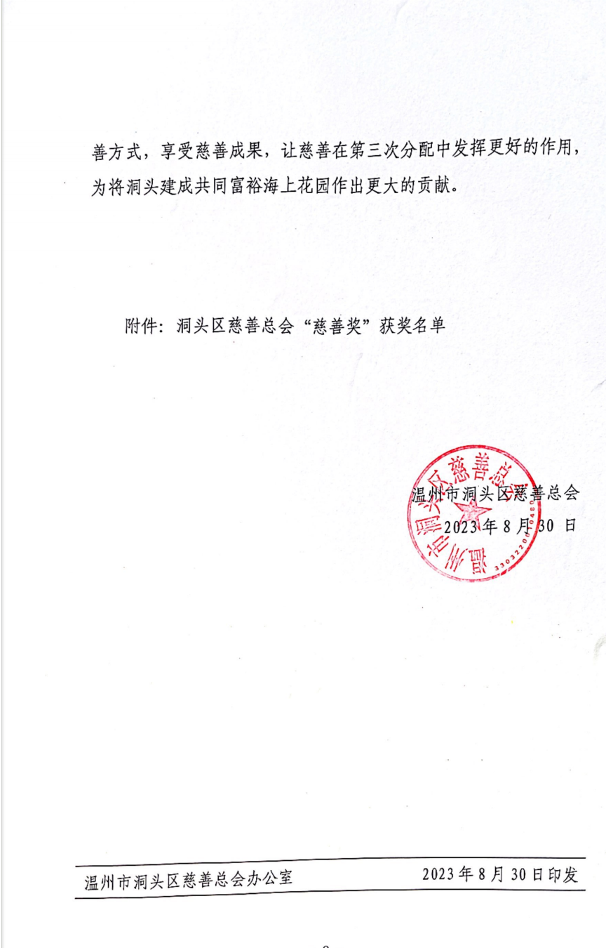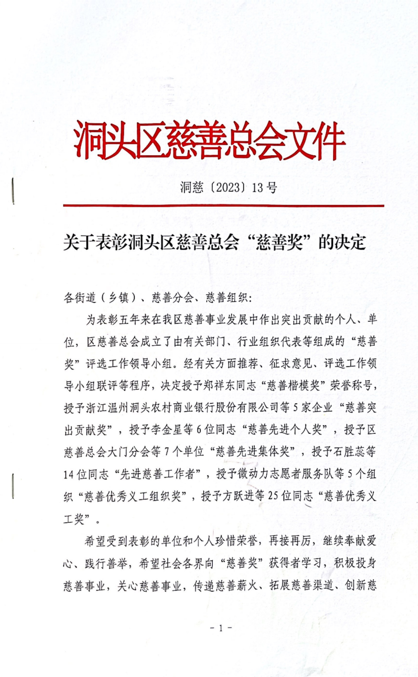 關(guān)于表彰洞頭區(qū)慈善總會(huì)“慈善獎(jiǎng)”的決定